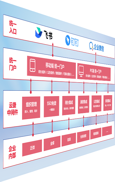 对协作平台提供支持服务,,支持企业应用与协作平台对接,,,包含组织同步、、、消息集成、、、待办集成等。。。。支持目前主流的协作平台:钉钉、、、、企微和飞书。。